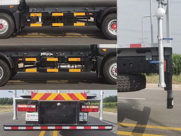 其它 加裝罐體及清洗裝置,用于清理路面或管道沉積物或清洗機械表面;選裝后噴霧裝置,選裝加裝電動遠程噴槍,選裝加裝后上噴霧裝置,選裝加裝箭頭燈,選裝加裝裝飾管,選裝前鴨嘴,選裝前鴨嘴及對沖裝置;僅采用軸距為:4500mm;罐體總容量為11.4立方米,罐體有效容積:10.9立方米,罐體尺寸(長×寬×高)(mm):4900×2350×1350;側后防護裝置材料均為:Q235B,側防護裝置與車架連接方式為螺栓連接;后防護裝置與車架連接方式為焊接,后防護裝置截面尺寸為:120×68mm,離地高度480mm;ABS系統生產廠家,型號 :焦作博瑞克控制技術有限公司,J ABS;襄陽東風隆誠機械有限責任公司.