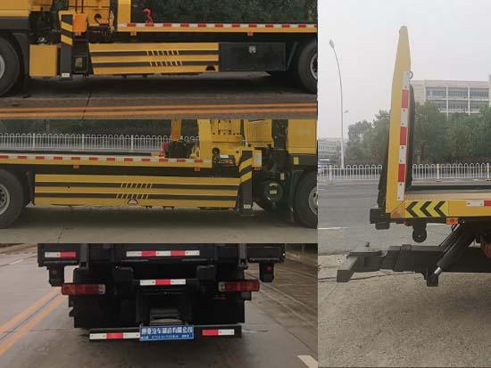 其它 該車用途為道路故障車輛,城市違章車輛拖運;主要裝置為托舉平板,吊機,拖牽裝置,絞盤等組成.當整備質量為15100kg時,托舉質量為2770kg(2人),2705kg(3人);當整備質量為14400kg時,托舉質量為3470kg(2人),3405kg(3人),側防護裝置采用材料Q235,連接方式為焊接連接,后防護裝置專用裝置代替,離地高度(mm):375.ABS系統型號/生產企業對應關系:ABS-E/威伯科汽車控制系統(中國)有限公司;ABS/ASR-24V-4S/4M/東科克諾爾商用車制動系統(十堰)有限公司;CM4XL-4S/4M/廣州瑞立科密汽車電子股份有限公司;3550D-1010/東科克諾爾商用車制動系統(十堰)有限公司.