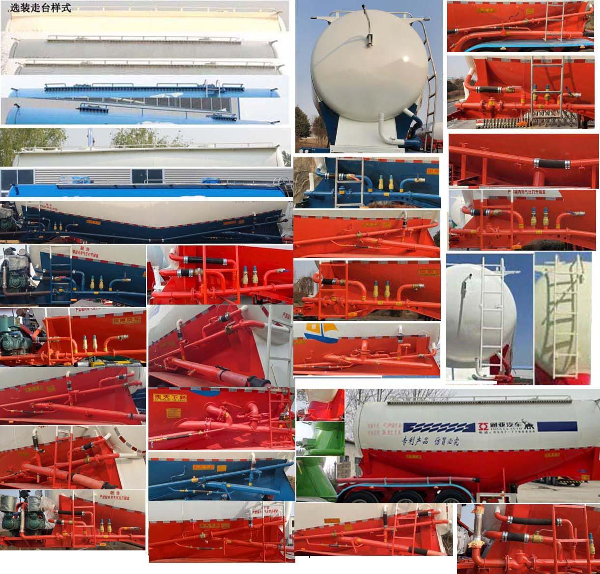 其它 頂部封閉不可開槽,后部不可開啟;罐體總容量:46.8立方米,罐體有效容積:44.5立方米,運輸介質:干煤灰;罐體外形尺寸罐體長(含封頭)10000mm,最大截面處寬2550mm,最大截面處高3180mm,前后封頭直徑為2010mm(選裝前后封頭直徑為1910mm),選裝罐體長(含封頭)為9800mm,最大截面處寬2550mm,最大截面處高3200mm,前后封頭直徑為2010mm(選裝前后封頭直徑為1910mm),選裝走臺樣式,選裝后組合燈樣式,選裝前位燈樣式,選裝爬梯安裝位置及個數(一個/兩個/三個),選裝前后封頭處進氣管位置和個數,選裝大梁圓孔樣式和非圓孔樣式,選裝大梁后部圓弧樣式,選裝牽引銷后大梁樣式,選裝管道樣式,選裝外觀樣式,選裝雙助吹樣式,選裝支腿連接件樣式,選裝外接氣源樣式,選裝壓力表安裝位置,選裝尾部標志板安裝位置,選裝號牌板安裝位置,選裝機組樣式,選裝前后支梁樣式,選裝爬梯樣式及踏板樣式,選裝雙邊支梁結構;ABS系統生產廠家:廣州瑞立科密汽車電子股份有限公司,梁山順安達汽車科技有限公司,廣州市西合汽車電子裝備有限公司,型號:CM2XL-4S/2M,SAD-ABS4S/2M,XH-GQ4S2M-E01;側面及后下部防護裝置所用材料材質為:Q235,側面及后下部防護裝置與車輛連接方式均為:螺栓連接或焊接,后部防護裝置的主要尺寸參數:斷面尺寸(mm)為120×68,離地高度為:500mm;