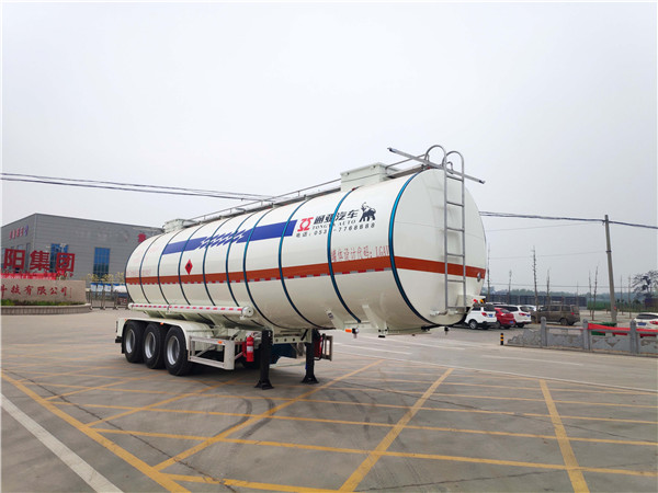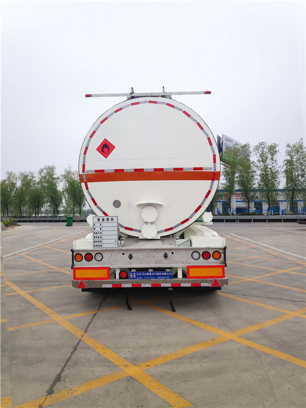 采用適用于牽引危險品運輸半掛車的牽引車.類項號:3,運輸危險貨物車輛的類型為:FL.罐體有效容積:34立方米;該車加裝保溫層,罐體為鵝頸式,保溫層內部罐體外形尺寸為:長9600mm,前端直徑為:2030mm,后端直徑為:2280mm,當保溫層厚度為:50mm,罐體(含保溫層)尺寸為:長9700mm,前端直徑為:2130mm,后端直徑為:2380mm;當保溫層厚度為:80mm,罐體(含保溫層)尺寸為:長9760mm,前端直徑為:2190mm,后端直徑為:2440mm;當保溫層厚度為:100mm,罐體(含保溫層)尺寸為:長9800mm,前端直徑為:2230mm,后端直徑為:2480mm;選裝保溫層內部罐體外形尺寸為:長9200mm,前端直徑為:2010mm,后端直徑為:2260mm,當保溫層厚度為:50mm,罐體(含保溫層)尺寸為:長9300mm,前端直徑為:2110mm,后端直徑為:2360mm;當保溫層厚度為:80mm,罐體(含保溫層)尺寸為:長度為:9360mm,前端直徑為:2170mm,后端直徑為:2420mm;當保溫層厚度為:100mm,罐體(含保溫層)尺寸為:長度9400mm,前端直徑為:2210mm,后端直徑為:2460mm;選裝號牌照板安裝位置,選裝后組合燈為圓形樣式,選裝后尾樣式;選裝外蒙皮樣式及有無繃帶結構,選裝走臺樣式,選裝電氣路連接器固定座安裝位置(中間/左側/右側),當輪胎型號為11R22.5 12PR時,輪胎中間加裝雨簾;ABS系統生產廠家:廣州瑞立科密汽車電子股份有限公司,廣州市西合汽車電子裝備有限公司,ABS型號:CM2XL-4S/2M,SXH-GQ4S2M-E01;側面及后下部防護裝置所有材料材質:Q235B,側面及后下部與車輛連接方式均為:螺栓連接,后部防護裝置的主要尺寸參數:斷面尺寸(mm):120×68,離地高度:500mm.車長/牽引銷到車輛最前端距離/軸距/后懸(mm)對應關系為:10200/1400/4830+1310+1310/1350,10200/1250/4980+1310+1310/1350,9800/1300/4530+1310+1310/1350,9800/1150/4680+1310+1310/1350. ![]() ![]() ![]()