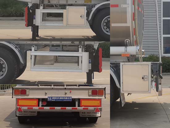 | 該車為非危化品運(yùn)輸車輛,罐體及車架均為鋁合金材質(zhì),罐體總?cè)萘?37.8立方米,罐體有效容積:36立方米;允許運(yùn)輸介質(zhì)的最大密度為:950千克/立方米,罐體外形尺寸(含封頭)為:長(zhǎng)9900mm,寬2480mm,罐體為鵝頸式,前端高度:1820mm,后端高度:2000mm;選裝走臺(tái)樣式,選裝尾部閥門,選裝前爬梯,選裝接頭護(hù)罩位置;ABS系統(tǒng)生產(chǎn)廠家:廣州瑞立科密汽車電子股份有限公司,廣州市西合汽車電子裝備有限公司,山東梁山德?tīng)柛F嚳萍加邢薰?ABS型號(hào):CM2XL-4S/2M,XH-GQ4S2M-E01,DEF-ABS4S/3M;側(cè)面及后下部防護(hù)裝置所用材料材質(zhì)均為:鋁合金,側(cè)面及后下部防護(hù)裝置與車輛連接方式均為:螺栓連接,后部防護(hù)裝置的主要尺寸參數(shù):斷面尺寸(mm)為120×68,離地高度為:500mm. | |||