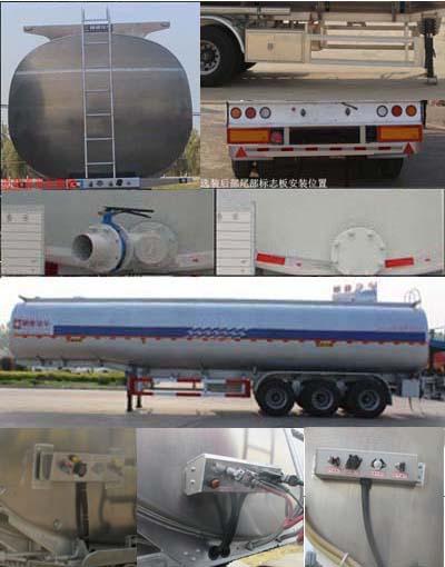 | 其它 | 罐體總容量:40立方米,罐體有效容積:38立方米,罐體外形尺寸(含保溫層)為:長10600mm,寬為2510mm,高(后端)為2190mm(罐體為鵝頸式,前端高度為2020mm),保溫層厚度為50mm,外保溫皮可選用不銹鋼,鍍鋅板,彩涂板,鋁合金等材質,保溫方式可選用不鉚釘鉚接也可用保溫帶綁扎,選裝輪罩樣式及鋁合金輪轂,選擇罐頂升降護欄,頂部可為擋水槽式也可以為走臺式,選裝爬梯的安裝個數(一個或兩個)和位置(前部或后部),選裝后尾絲杠閥,選裝后部結構,選裝加熱方式,選裝罐蓋個數和位置,選裝電氣路連接器固定座安裝位置,工具箱左右位置可選裝,選裝尾部標志板安裝位置,ABS系統生產廠家:廣州瑞立科密汽車電子股份有限公司,梁山順安達汽車科技有限公司,山東梁山德爾福汽車科技有限公司;ABS型號:CM2XL-4S/2K(4S/2M),SAD-ABS4S/2M,DEF-ABS4S/3M;側面及后下部防護裝置材質均為:鋁合金,側后防護與車輛連接方式均為:螺栓連接,后部防護裝置的主要尺寸參數:斷面尺寸(mm):120×68,離地高度:500mm. | ||