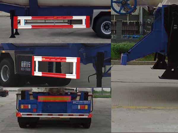 | 其它 | 罐體總容量:55立方米,罐體有效容積:52.4立方米;運輸介質:煙煤粉,介質堆密度:570千克/立方米,罐體長:12250mm,前端直徑:2300mm,后端直徑:2500mm.ABS系統生產廠家:廣州瑞立科密汽車電子股份有限公司,梁山順安達汽車科技有限公司,山東梁山德爾福汽車科技有限公司,型號:CM2XL-4S/2K(4S/2M),SAD-ABS4S/2M,DEF-ABS4S/3M;側面及后下部防護裝置所用材料材質為:Q235,側面及后下部防護裝置與車輛連接方式均為:螺栓連接或焊接,后部防護裝置的主要尺寸參數:斷面尺寸(mm)為120×68,離地高度為:500mm.頂部封閉不可開槽,后部不可開啟. | ||