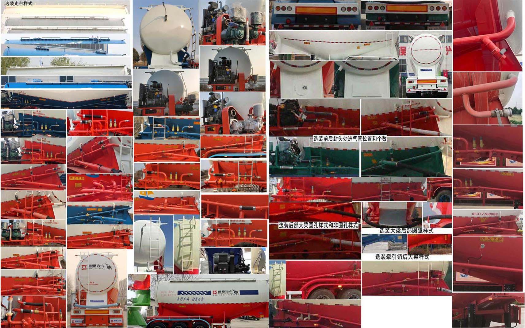 備注 罐體有效容積為:28.3立方米,運輸介質:固井專用水泥,介質堆密度:1200千克/立方米,罐體尺寸(含封頭)長:9130mm,最大截面寬度:2490mm,最大截面高度:2900mm,前后封頭直徑:2010mm;選裝車輛前部不加裝機組,不帶機組時外形尺寸為(mm):9250×2500×3990,選裝爬梯的安裝個數和位置及輪罩樣式,罐體外形樣式,空氣懸掛,選裝燈具型號及后組合燈所在部件的樣式;車長為10000mm時,軸距為;5150+1310+1310,5000+1310+1310,前懸/后懸:-/880;車長為9250mm時,軸距為;5150+1310+1310,5000+1310+1310,前懸/后懸:-/880;ABS系統生產廠家:威伯科汽車控制系統(中國)有限公司,廣州瑞立科密汽車電子股份有限公司,梁山順安達汽車科技有限公司,型號:4005000810 4S2M,CM2XL-4S/2K(4S/2M),SAD-ABS4S/2M;側面及后下部防護裝置所用材料材質為:Q235,側面及后下部防護裝置與車輛連接方式均為:螺栓連接或焊接,后部防護裝置的主要尺寸參數:斷面尺寸(mm)為120×68,離地高度為:500mm.后部不可開啟,頂部封閉不可開槽. 選裝大梁后部可以為弧形,選裝爬梯的安裝位置可以在罐體左側前部或后部或罐體后部,爬梯個數可以為一個或兩個或三個,選裝輪罩樣式及鋁合金輪轂,選裝走臺樣式,選裝罐頂升降護欄,頂部可為擋水槽式也可為走臺式,選裝前后封頭處進氣管位置和個數,工具箱位置可選裝,選裝罐蓋個數及位置,選裝大梁可以鉆孔,選裝罐體罐道的樣式,選裝后部大梁堵板樣式,選裝下出灰管道樣式.