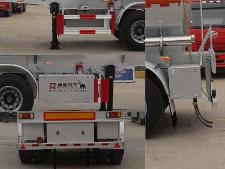 其它 采用適用于牽引危險品運輸半掛車的牽引車.類項號:8,運送危險貨物車輛的類型:AT;罐體總容積:28立方米,罐體外形尺寸為:長9400mm,最大直徑2050mm;ABS系統生產廠家:廣州瑞立科密汽車電子股份有限公司,梁山順安達汽車科技有限公司,ABS型號:CM2XL-4S/2M,SAD-ABS4S/2M;側面及后下部防護裝置所有材料材質:Q235,側后防護連接方式均為:焊接或螺栓連接,后部防護裝置的主要尺寸參數:斷面尺寸(mm):120×68,離地高度:500mm.