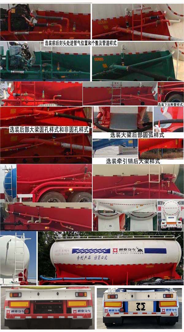 通亞達牌CTY9405GFLDC50低密度粉粒物料運輸半掛車主要技術參數