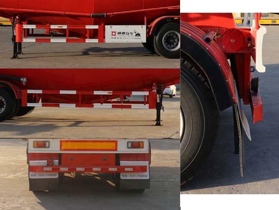 罐體總?cè)萘?50立方米,罐體有效容積:48.2;運輸介質(zhì):垃圾飛灰,最大介質(zhì)密度:620千克/立方米,運輸車輛類型為AT,類項號:9;選裝前部加裝機組時外形尺寸(mm)為:11400,11150×2550×4000,罐體外形尺寸:罐體長(含封頭)10350mm,寬2550mm,高3350mm,最小封頭直徑為:2010mm,選裝罐體尺寸(含封頭)長為:10600mm,寬2550mm,高:3350mm,最小封頭直徑為1960mm;選裝后部燈具可以為圓形,選裝大梁后部可以為弧形,選裝爬梯的安裝位置可以在罐體左側(cè)前部或后部或罐體后部,爬梯個數(shù)可以為一個或兩個或三個,選裝走臺樣式,選裝罐頂升降護欄,頂部可為擋水槽式也可為走臺式,選裝前后封頭處進氣管位置和個數(shù),工具箱位置可選裝,選裝大梁可以鉆孔,選裝罐體管道的樣式,選裝機組樣式;該車加裝空氣懸架,安裝盤式制動器;EBS系統(tǒng)生產(chǎn)廠家:廣州瑞立科密汽車電子股份有限公司;EBS型號:CM-TEBS;側(cè)面及后下部防護裝置所用材料材質(zhì)為:Q235,側(cè)防護連接方式為:螺栓連接,后防護連接方式為:焊接,后部防護裝置的主要尺寸參數(shù):斷面尺寸(mm)為120×68,離地高度為:500mm.罐體頂部封閉不可開槽,后部不可開啟,牽引車采用適用于牽引危險品運輸半掛車的牽引車;車長/牽引銷到車輛最前端距離/軸距/后懸的對應(yīng)關(guān)系為:11400/1250/6650+1310+1310/880,11400/1350/6550+1310+1310/880,11400/1550/6350+1310+1310/880,11150/1000/6650+1310+1310/880,11150/1100/6550+1310+1310/880,11150/1300/6350+1310+1310/880,10600/450/6650+1310+1310/880,10600/550/6550+1310+1310/880,10600/750/6350+1310+1310/880,10500/700/6350+1310+1310/830. |