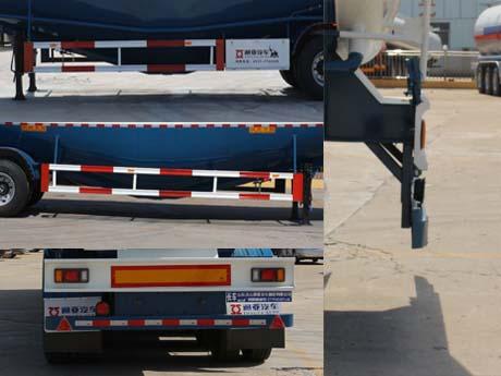 備注 體總容量:68立方米,罐體有效容積:65立方米;罐體外形尺寸:罐體長(含封頭)13200mm,寬2550mm,高3440mm,最小直徑為:2012mm,選裝罐體尺寸(含封頭)長為:12600mm,寬2550mm,高:3440mm,最小直徑為2112mm,選裝空氣懸掛;車長/軸距/后懸的對應關系為:13200/8180+1310+1310/1200,13200/8455+1310+1310/925,13200/8580+1310+1310/800,12600/8180+1310+1310/1200,12600/8455+1310+1310/925,12600/8580+1310+1310/800;,ABS系統生產廠家:廣州瑞立科密汽車電子股份有限公司,梁山順安達汽車科技有限公司,威伯科汽車控制系統(中國)有限公司,山東梁山德爾福汽車科技有限公司,ABS型號:CM2XL-4S/2M,SAD-ABS4S/2M,4005000810 4S2M,DEF-ABS4S/3M;側面及后下部防護裝置所用材料材質為:Q235,側面及后下部防護裝置與車輛連接方式均為:螺栓連接或焊接,后部防護裝置的主要尺寸參數:斷面尺寸(mm)為120×68,離地高度為:500mm.罐體頂部封閉不可開槽,后部不可開啟.