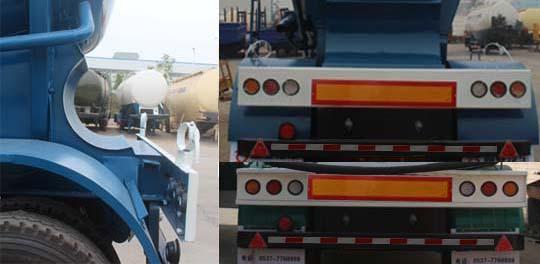 罐體總容量:63立方米,罐體有效容積:60立方米,運輸介質:煙煤粉,密度:450千克/立方米,罐體尺寸(含封頭)長:11950mm,最大寬度:2500mm,前封頭直徑 2124mm,后封頭直徑2492mm,最大截面高度3512mm,選裝車輛前部不加裝機組,不帶機組時外形尺寸(mm)為:11950*2500*4000.選裝爬梯的安裝可以是罐體兩側或罐體后部,爬梯個數可以為一個或兩個,選裝大梁后部可以為弧形,選裝爬梯的安裝位置可以在罐體左側前部或后部或罐體后部,爬梯個數可以為一個或兩個或三個,選裝輪罩樣式及鋁合金輪轂,選裝走臺樣式,選裝罐頂升降護欄,頂部可為擋水槽式也可為走臺式,選裝前后封頭處進氣管位置和個數,工具箱位置可選裝,選裝罐蓋個數及位置,選裝罐體罐道的樣式,選裝大梁可以為鉆孔樣式,當車長/軸距/后懸對應關系為:12700/7250+1310+1310/1430,11950/7250+1310+1310/1430,12700/7450+1310+1310/1430,11950/7450+1310+1310/1430,ABS系統生產廠家:廣州瑞立科密汽車電子股份有限公司,梁山順安達汽車科技有限公司,山東梁山德爾福汽車科技有限公司,ABS型號:CM2XL-4S/2K(4S/2M),SAD-ABS4S/2M,DEF-ABS4S/3M;側面及后下部防護裝置所用材料材質為:Q235,側面及后下部防護裝置與車輛連接方式均為:螺栓連接或焊接,后部防護裝置的主要尺寸參數:斷面尺寸(mm)為120×68,離地高度為:500mm.頂部封閉不可開槽,后部不可開啟. |