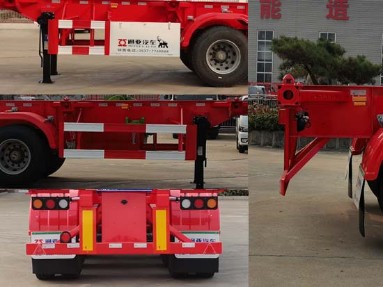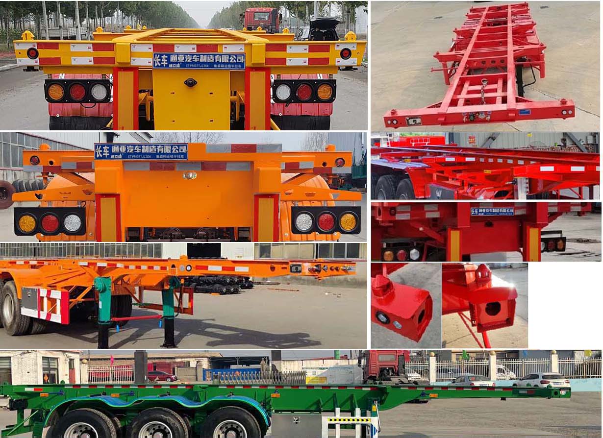 產品名稱: 通亞達牌CTY9407TJZ30A集裝箱運輸半掛車 外形尺寸: 11000,10500,10000,9500×2550,2500,2480×1400,1450,1500,1550,1570(mm)