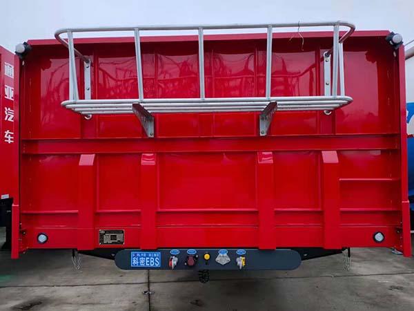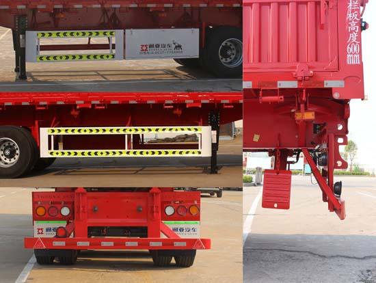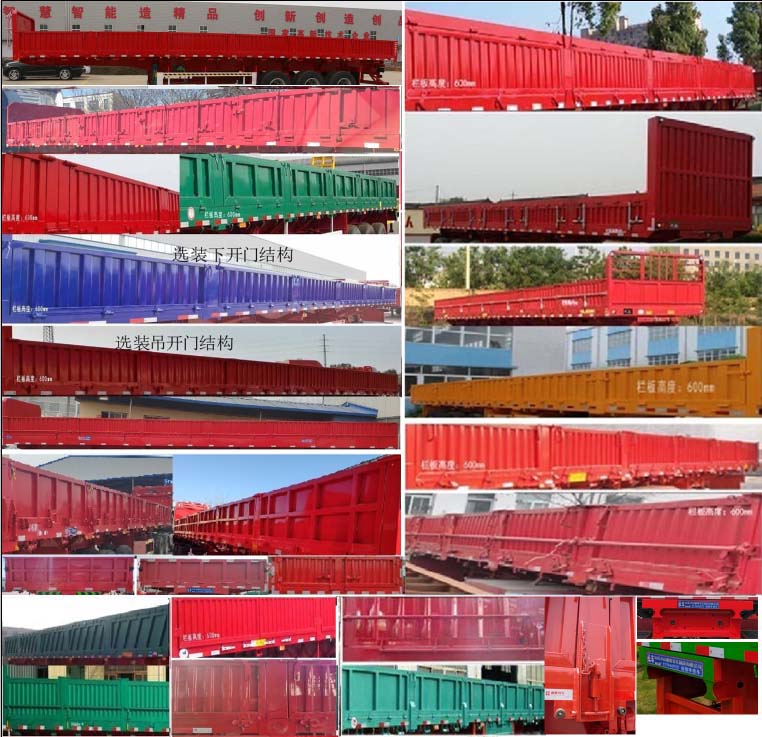 卸貨方式為:側卸;安裝有手動鎖緊機構;選后組合燈為矩形樣式,選裝后霧燈圓形樣式,選裝尾部標志板安裝位置,每側可選4扇門,5扇門,6扇門,選裝欄板結構為下開門,吊開門結構,橫瓦楞,豎瓦楞,方管十字花樣式,選裝前檔板結構,選裝側面樣式,選裝后部樣式,立柱可選內插,外插樣式,選裝包角樣式及合頁樣式;ABS系統生產廠家:廣州瑞立科密汽車電子股份有限公司,梁山順安達汽車科技有限公司,廣州市西合汽車電子裝備有限公司,山東梁山德爾福汽車科技有限公司,型號:CM2XL-4S/2M,SAD-ABS4S/2M,XH-GQ4S2M-E01,DEF-ABS 4S/3M;側面及后下部防護裝置所用材料材質為:Q235,側面及后下部防護裝置與車輛連接方式均為焊接,后部防護裝置的主要尺寸參數:斷面尺寸(mm)為140×50,離地高度為:480mm;車長/牽引銷到車輛最前端距離/軸距/后懸對應關系為:13000/1200/6880+1310+1310/2300,13000/1300/6780+1310+1310/2300,13000/1400/6680+1310+1310/2300,12500/1300/6480+1310+1310/2100,12000/1200/6380+1310+1310/1800. |