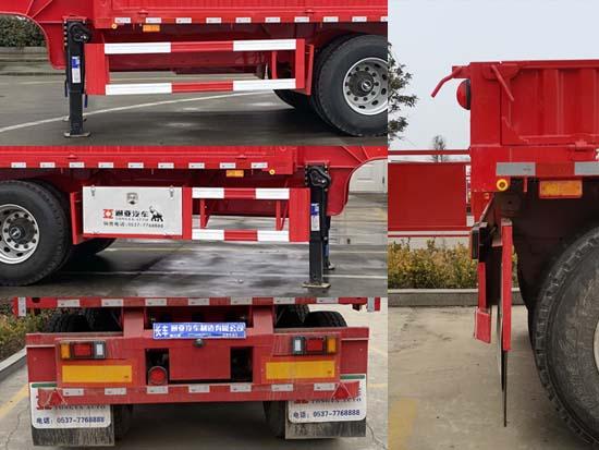 | 其它 | 卸貨方式為:后卸;安裝有手動鎖緊機構;選裝欄板高度,ABS系統生產廠家:廣州瑞立科密汽車電子股份有限公司,廣州市西合汽車電子裝備有限公司,山東梁山德爾福汽車科技有限公司,型號:CM2XL-4S/2M,XH-GQ4S2M-E01,DEF-ABS 4S/3M;側面及后下部防護裝置所用材料材質為:Q235B,側面防護裝置與車輛連接方式為螺栓連接,后下部防護裝置與車輛連接方式為焊接,后部防護裝置的主要尺寸參數:斷面尺寸(mm)為120×60,離地高度為:500mm;車長/牽引銷到車輛最前端距離/軸距/后懸對應關系為:9700/520/5800+1310+1310/760,9600/500/5680+1310+1310/800,9500/500/5580+1310+1310/800. | ||