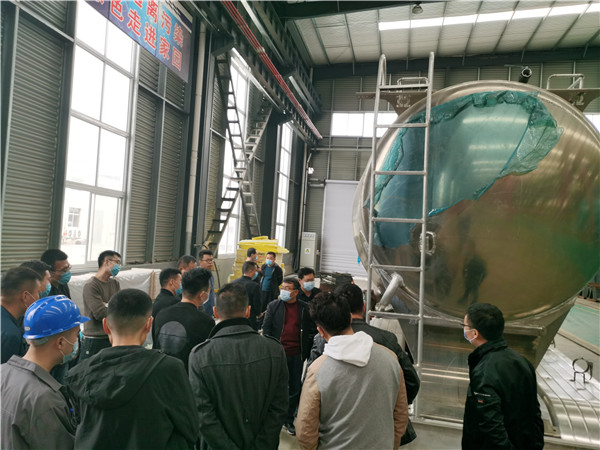 楊總帶領各部門負責人和各區域銷售經理對鋁粉罐產品進行指導講解