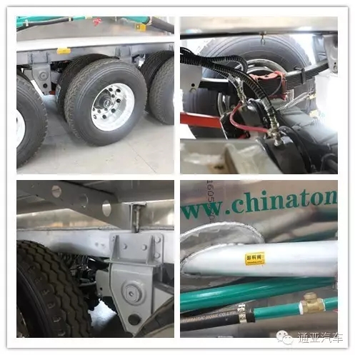 這臺車采用5454型鋁合金材質,9.0-22.5鋁合金真空鋼圈。廣東富華高端VALX 10T車軸(含科密ABS)。罐蓋、透氣帶墊板、支腿、工具箱、側后防護等全部采用鋁合金。