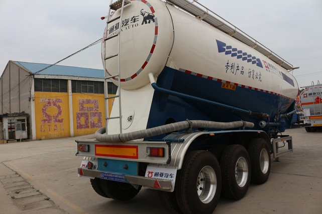 臥式顆粒運(yùn)輸專用車適用于運(yùn)輸如細(xì)沙、純堿、干混砂漿、糧食、PVC、PTA、PA66等粉末狀或直徑大于0.1mm顆粒狀等流動(dòng)性差的貨物。