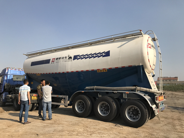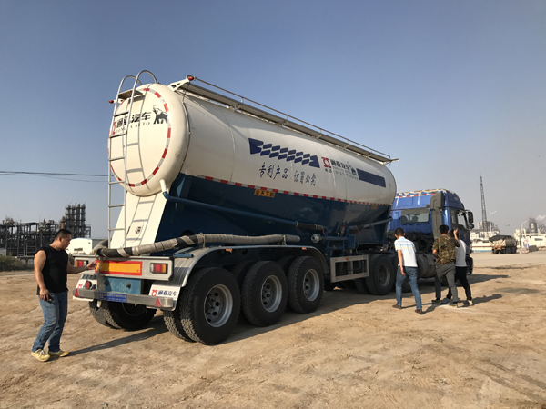 國內客戶訂購的臥式顆粒運輸專用車運輸純堿、PTA、PA66等。