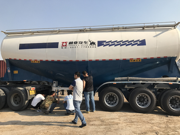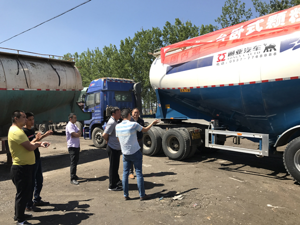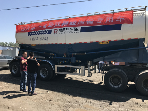 在巡展中碰到通亞老客戶在使用欄板半掛車運輸純堿。經過一番交談,客戶說用欄板車拉的少、污染大、卸料麻煩需要人工,運輸途中還要躲避檢查。對通亞臥式顆粒運輸專用車非常期待,并表示會保持關注。