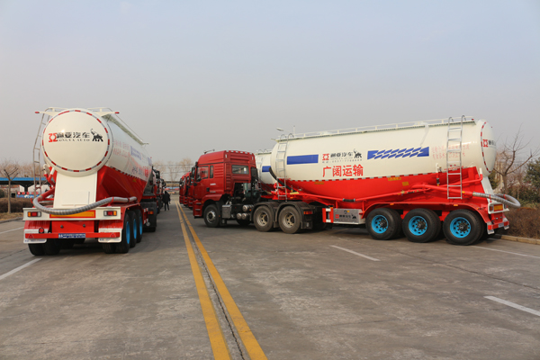 近兩月內,廣闊運輸公司已經幾次批量訂購通亞粉罐車近40余臺,馬上會繼續下單幾十臺以備年后用車高峰時期,希望其他用車養車的用戶也可以提前做好下單準備,不要像2018年春節后上班時一天下單兩三百臺造成生產擁堵現象,既對您提車造成不便,也耽誤您發財的機會。