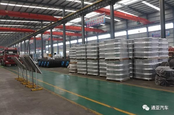 車間里存放了好多新輪胎、新輪轂,為了滿足客戶所定的訂單又來了兩大車。