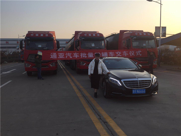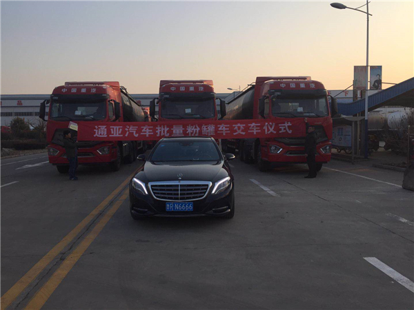 2019年1月21日通亞汽車多年的忠實客戶寧老板粉罐半掛車20余臺成功交付客戶,通亞公司為其舉行了交車儀式且雙方代表合影留念。用通亞車,帶你發(fā)發(fā)發(fā)!!!
