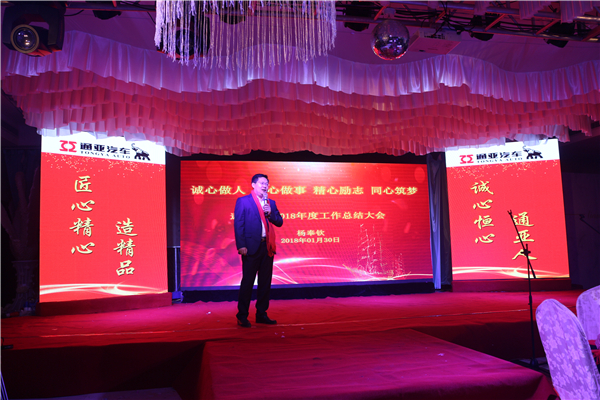 一曲開場曲后由通亞董事長楊奉欽先生為全體員工作2018年工作總結(jié)報告