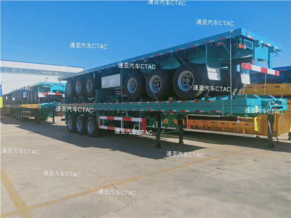 集裝箱平板半掛車可運(yùn)輸集裝箱以及散貨等,一車多用深受客戶喜愛。
